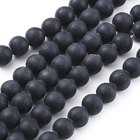 Fil de perles naturelles d'Obsidienne Noire Givrée non teintées