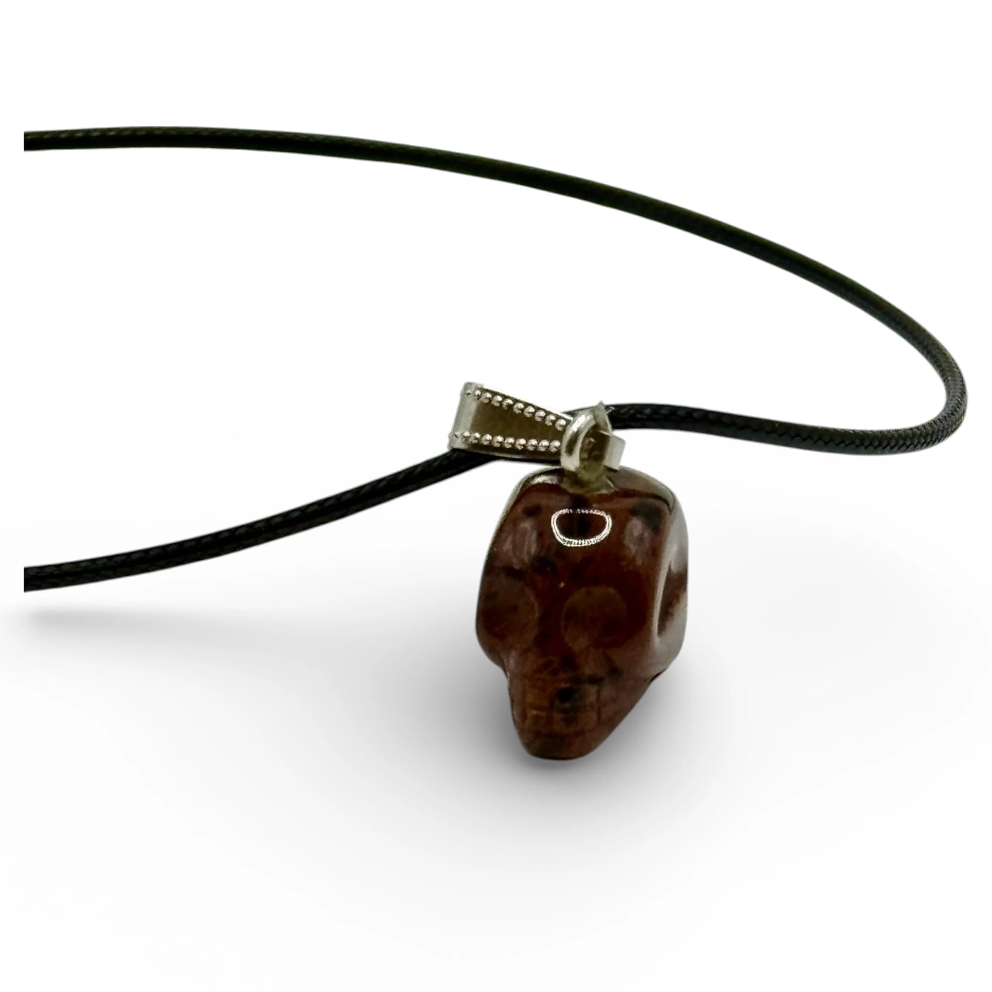 Pendentif Crane Obsidienne Acajou avec cordon réglable 19x18mm