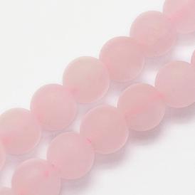 Fil de perles naturelles de Quartz Rose givré non teintées